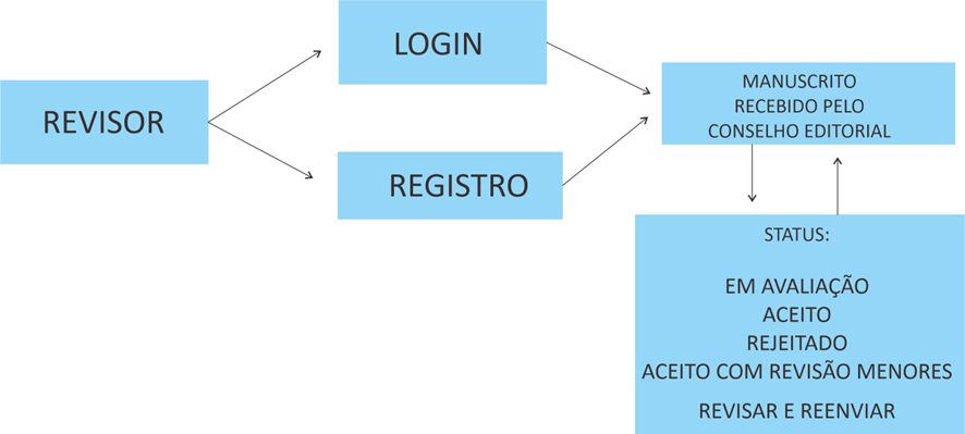 - Decisão editorial, podendo o manuscrito ser aceito, aceito com revisões menores, revisar e reenviar ou rejeitado;